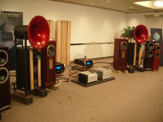 国産のスピーカーが無茶頑張っている。特にフォステックスのが凄いよかった(いちばん下の写真の茶色いダブルウーファのスピーカ)。価格も海外品のようなベラボーという価格でもないし、品質もピカイチだろう。もしかしたら超お買い得の品なのかも知れない。