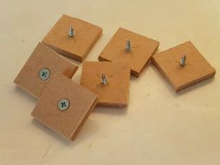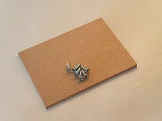 まずはスパイク部分。材料はタッピングネジ(皿ネジタイプ)とネジを支えるMDF板。