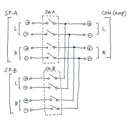 - スピーカーではなく2台のアンプ切替に用いる際には同時オンは禁止(アンプが壊れる可能性ある)。