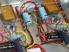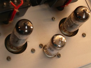 また、真空管アンプは、スピーカーとはトランス結合なので、トランジスタアンプのようにDCを垂れ流してスピーカーを壊してしまう心配もありませんしね。ただ、扱う電圧が高いので、感電に注意する必要はあります。特に電源のコンデンサに溜まり残った電荷は要注意です。回路をいじくる時はコンデンサーのディスチャージをお忘れなく!