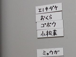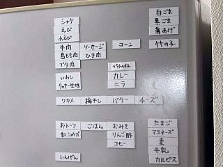 そして、冷蔵庫内の食材をマジックで記入します。1枚1品です。