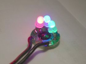 さらに、ドームを分解すると、円形基板上に3個のLED(RGB3色)とLED演出制御駆動用のICチップ(中央黒色モールド内)が搭載されている。それ以外の電子部品はない。