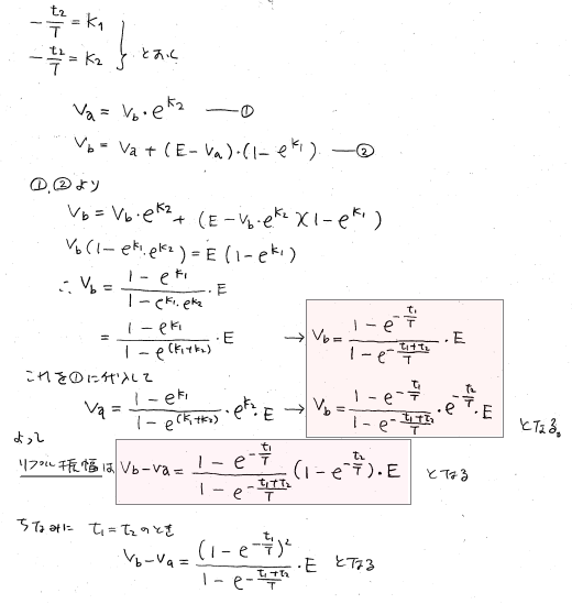 また、RC積分回路やRC微分回路のステップ応答に関する解説は、いろんな文献に書いてあるんですが、連続パルスをそれら回路に入力した時に、その出力振幅はどうなの?という問いへの納得できる解説が見あたらなかったので計算してみました。