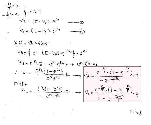 連続パルスが入力されて十分な時間が経過後の定常状態での出力電圧を考える。