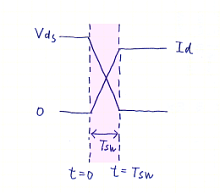 Tsw期間(スイッチング遷移期間)での損失電力を考える