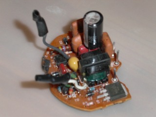 最近の電球型蛍光灯も分解してインバータ回路基板を取り出してみました。