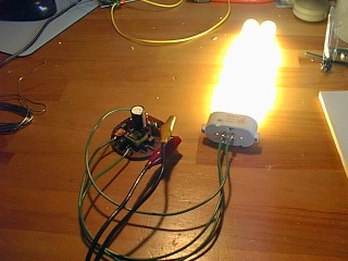 電球型蛍光灯を分解して、通電する行為は、たいへん危険を伴います。扱っている電圧も高いので、感電する恐れもあります。ここに記載している内容は、あくまでも趣味レベルのことです。十分ご注意ください。