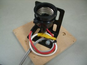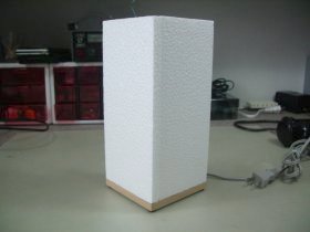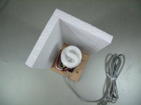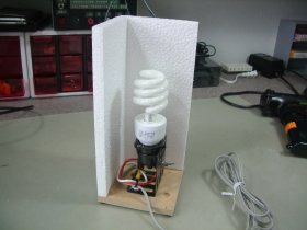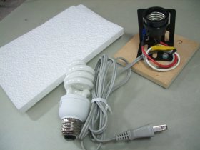 発泡スチロールなので発熱電球ではなく発熱の小さい電球型蛍光灯を用いた。