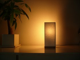 何か梱包材だった発泡スチロール板があったので、それを使ってマイルドな灯火の間接照明器具を作ってみた。