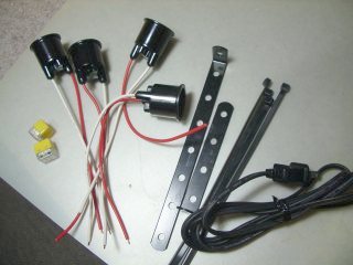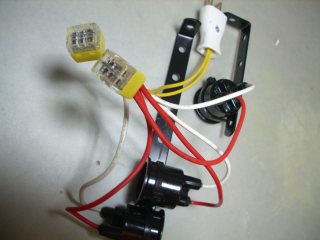 耐熱リード線付き電球ソケットと接続ターミナルと穴あきスチール製L金具と