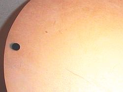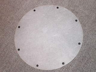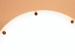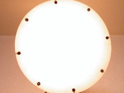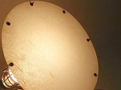 これまたホームセンターで購入した半透明アクリル板(和紙が挟み込んであるやつ)を丸く切り取り、取付けるのです。薄手のアクリル板なので金切りバサミで切れました。ちなみに丸(円)の下書きはフライパンを用いました。
