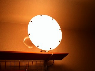 工事用の白熱球照明器具を改造して半透明の円板を取付けたオシャレ(どこが?)な照明です。