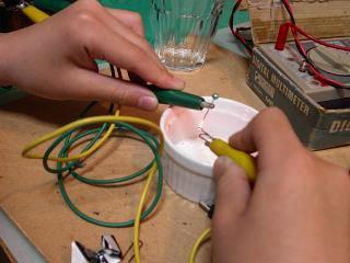 こうやって、たくさんの電流を流せば、鉄の針も溶かして光らせることもできるんだなぁ、