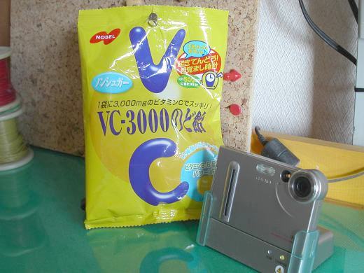 合成ビタミンCたっぷりの飴と今でも現役バリバリのCASIOエクシリム。妻用のカメラなのです。