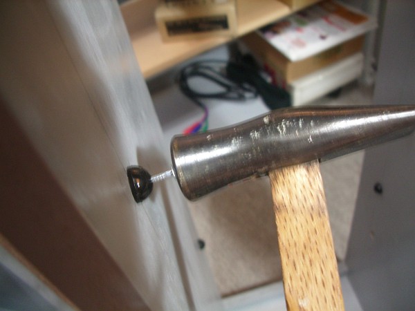 それを棚の内側側面の所定の場所にネジ込む。そして棚板を乗せる。