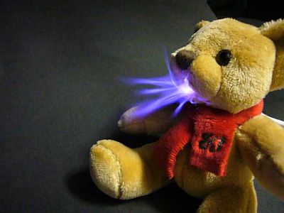 ちなみにプラズマとは個体、液体、気体の次の物質の状態で、気体が電離した状態のこと。身近では点灯中の蛍光灯の中もプラズマ状態である。上記の浜口研究室では「プラズマ・ナノテクノロジーをキーワードに、プラズマやビーム照射下のナノスケール表面物性および高い非線形性を持つプラズマ物性の理論的実験的研究を行っています・・」とのこと。でも、なんで、クマさんの口からプラズマジェットやねん?!