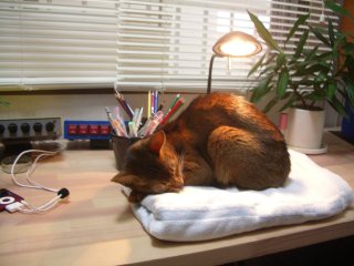 曇の日や雨の日、みかんは、こうやって白熱球の暖かな光の下で居眠りするのが大好きなのだ。