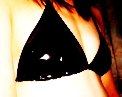 とてもハイコントラストなビキニ水着画像です。 十分な中間値フィルタ(MedianFilter)でノイズを除去し、ガンマ補正値を調整しながら、 黒色飽和レベルまでコントラストを上げると、こんな感じになりまた。